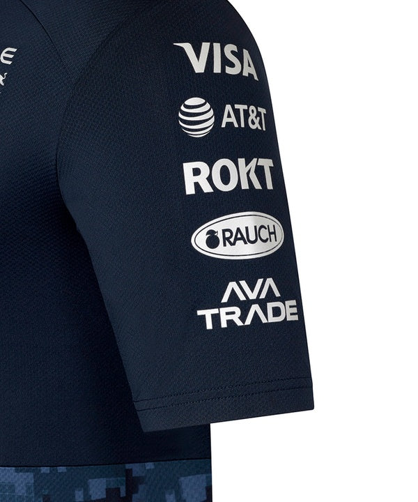 フェルスタッペン選手、角田裕毅選手が実際に着用しているモデルのレプリカ仕様で、デジタルカモフラージュ柄にチームロゴ・スポンサー各ロゴをバランス良く配置。