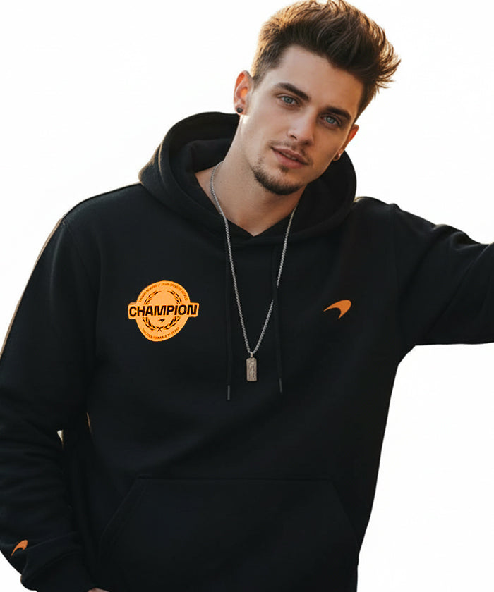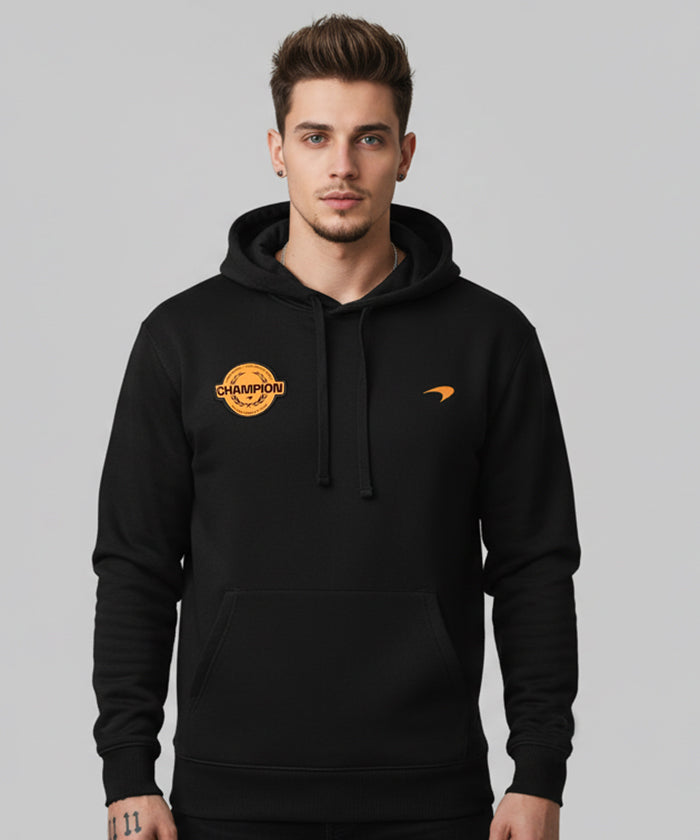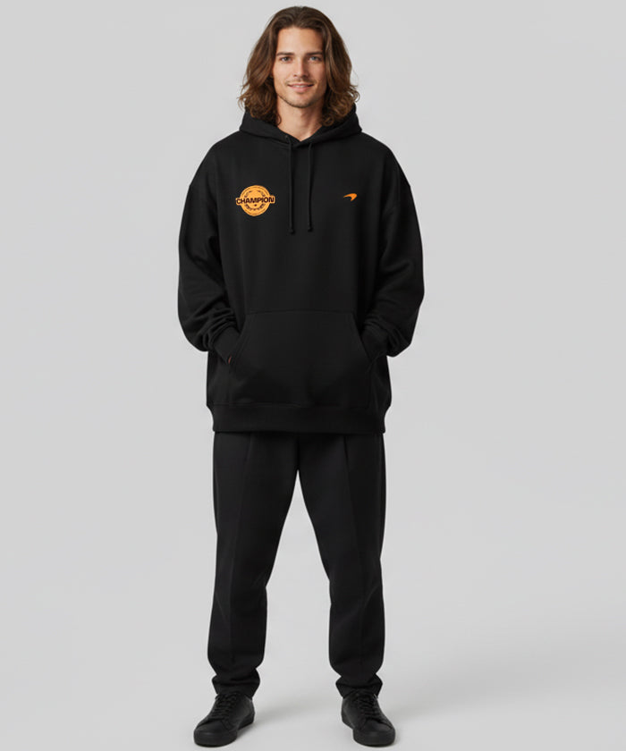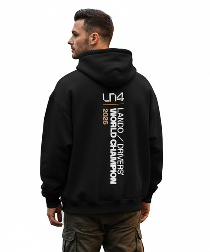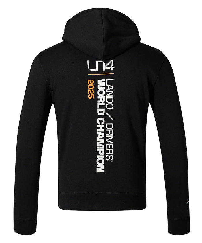 2025年F1シーズン、最終戦までもつれ込んだ激闘を制し、ランド・ノリス選手がワールドチャンピオンに輝いた歴史的シーズンを記念したオフィシャルフーディーです。