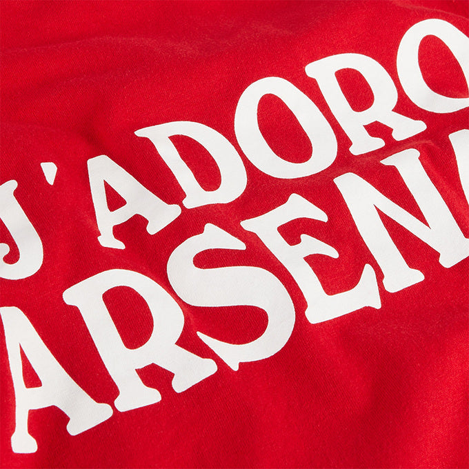 「J'Adoro Arsenal(アーセナル大好き)」と胸元に大きくプリントされた、グーナー必見の一枚!ガナーズへの想いをいつでもこのTシャツと一緒に!