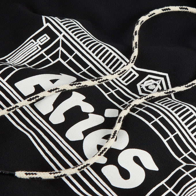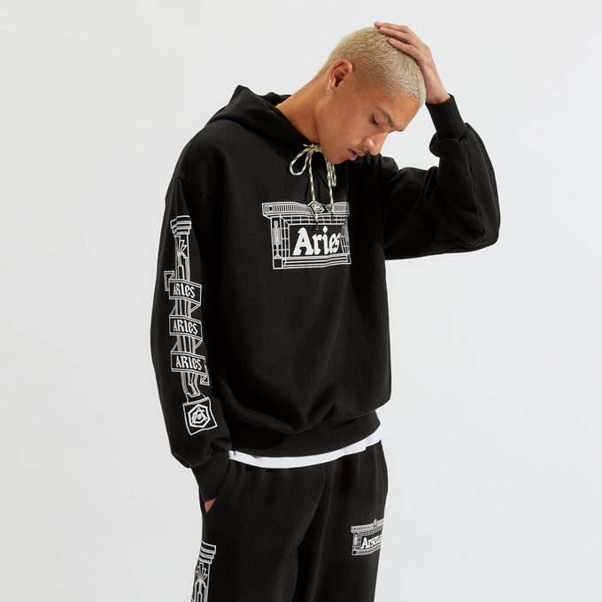 アリーズの特徴的なコラムデザインをアーセナルのエッジを効かせて再解釈、正面と袖にはハイベリー風の寺院と柱、背面にはゴシックなアーセナルロゴのグラフィックがプリントされたフーディー。柔らかいコットン仕上げが特徴です。